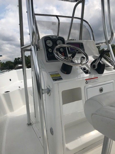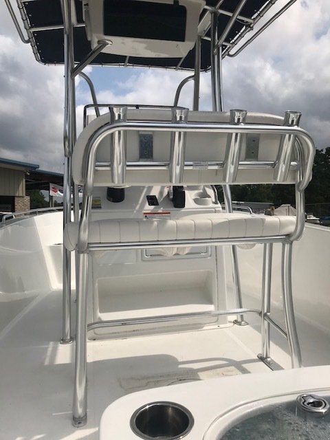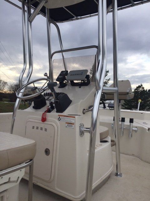 Custom t-top with lockable electronics box, swim platform, power pole, VHF Radio, Lowrance 4X Elite fish finder, Garmin 7SV GPS fish finder combo at console, Hummingbird Helix5 at trollingmotor, Minn Cota Riptide 80 lb. thrust trollingmotor, aluminum trailer with aluminum wheel and spare tire, 2 bank battery charger. Clean boat! Runs great! Serviced regularly! This boat is loaded with extras.